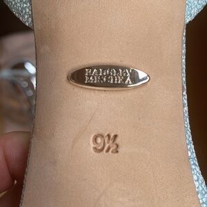 Badgley Mischka "Tasmine" sandals in metallic, glitter fabric with crystal trim