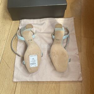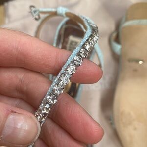 BADGLEY MISCHKA Tasmine Metallic Crystal Ankle-Strap Sandals, Soft Blue 9.5