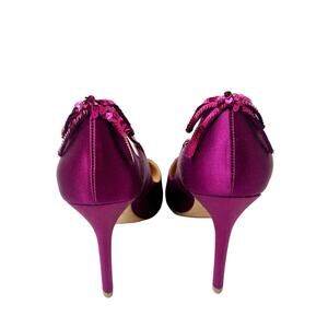 BADGLEY MISCHKA WOMEN'S JEWEL DRESS DARK PINK LEATHER PUMP POINTY HEELS SIZE 10