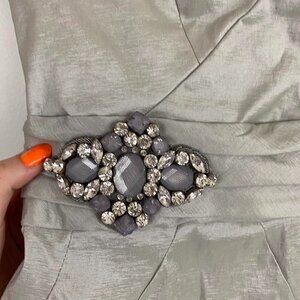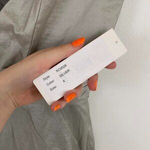 BADGLEY MISCHKA silver off the shoulder dress nwt