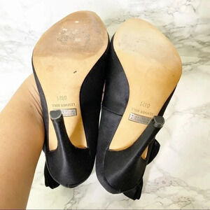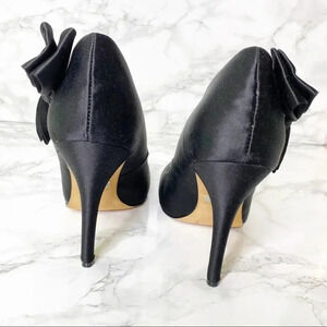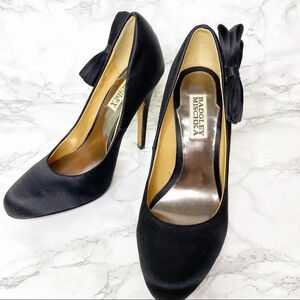BADGLEY MISCHKA Black Satin Calton Side Bow Pumps Sz 6.5