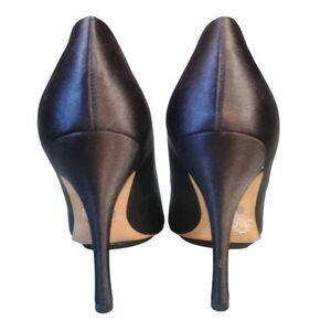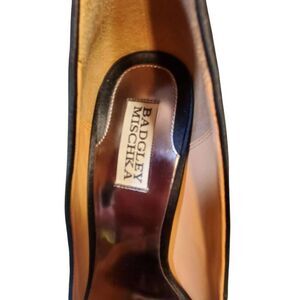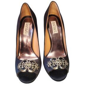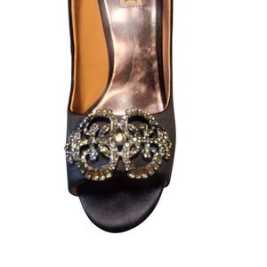 BADGLEY MISCHKA Black Shoes Satin Ladies Stiletto Peep Toe high Heel Size 8.5