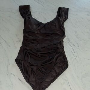 BADGLEY MISHKA ONE PIECE BATHING SUIT gray 8 swim drape