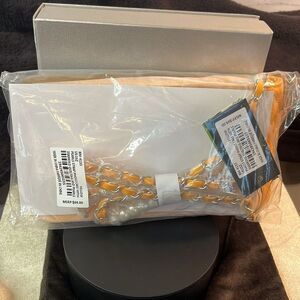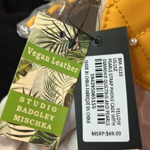 BADGLEY MISCHKA YELLOW PHONE CASE WITH DIAMOND QUILTING CROSSBODY & PEARL STRAP. NWT