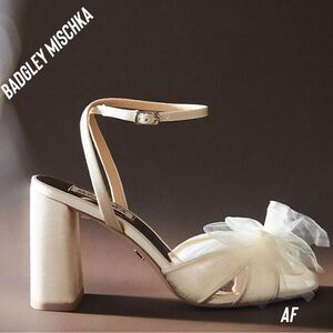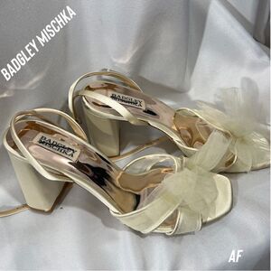 BADGLEY MISCHKA TESS BLOCK HEELS NEW SIZE 9 IVORY