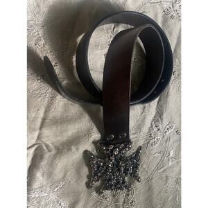 BADICHI Brown Leather Belt Mens SCULL CROSS BUCKLE METAL MOTORCYCLE , ISRAEL.