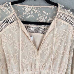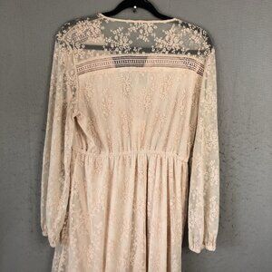BAE Dress Womens M Pink Blush Lace Cottage Core Fairy Feminine Midi NEW