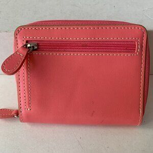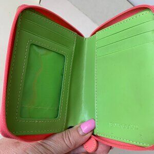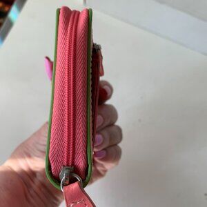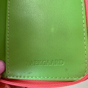 BAEKGAARD NEON PINK GREEN SMALL LEATHER WALLET ZIPPED AROUND 5"