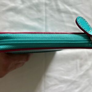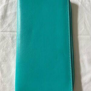 BAEKGAARD Turquoise Leather Zip Round Passport Travel Wallet EUC.