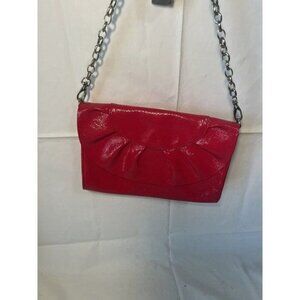 BAEKGAARD scalloped clutch chain strap purse leather Vera Bradley-Material: leather-Color: redish pink-Approx Measurements:-Height: 7“-Width: 10”-Lined w/ bright floral fabric-Magnetic snap closure-Clutch style with flap-No strap, two side hooks to add a strap if desired-Interior zip pocket-Interior 2 slip pockets