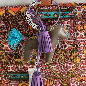 From South Korean. Orange, decorative, leather handles, ornaments included bag14" long X13 1/2