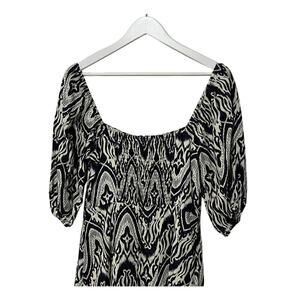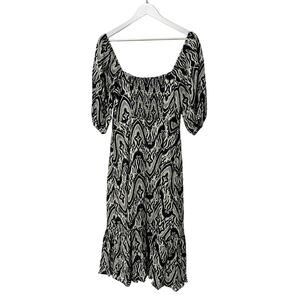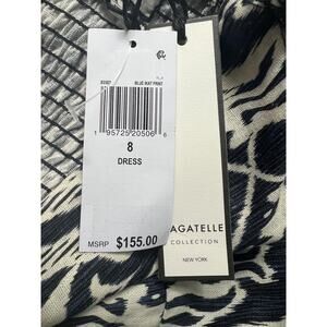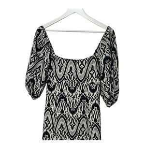 BAGATELLE COLLECTION WOMENS SIZE 8 DRESS PUFF SLEEVE IKAT MIDI DRESS BLUE NEW