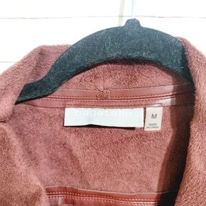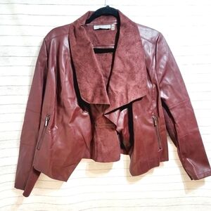 BAGATELLE FRONT OPEN DRAPE FAUX SUEDE JACKET, IN MAROON, SZ MEDIUM