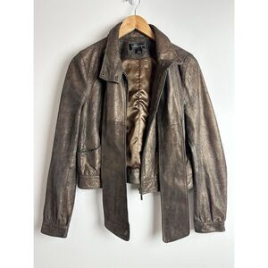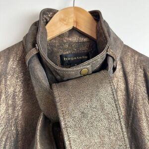 BAGATELLE Metallic Brown Leather Jacket Size Medium Scarf Tie Motorcycle Biker