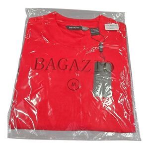 BAGAZIO MEN'S SOLID RED CREW NECK TEE WITH RIBBED COLLAR AND SLEEVE. BM1145
