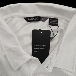 BAGAZIO MENS SOLID WHITE CASUAL 3 BUTTON SHORT SLEEVE PULLOVER POLO SHIRT BM1157