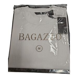 BAGAZIO MEN'S SOLID WHITE CREW NECK TEE WITH RIBBED COLLAR AND SLEEVE. BM1145