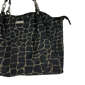 BAGGALLINI Black Cheetah Animal Print Nylon Tote with Silver Hardware