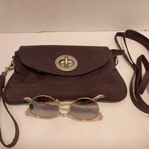BAGGALLINI Gray Nylon Convertible Clutch/Crossbody Bag Small Twist Lock