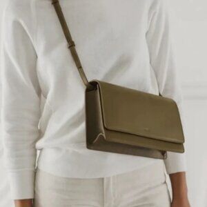 Very hard to find BAGGU leather structured crossbody in color Kelp, which is a gorgeous olive green. I have loved this bag, but I am a mom now and cannot wear it as much as I'd like. She still has lots of life in her!