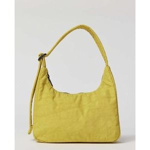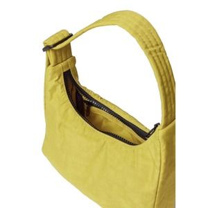 This BAGGU Mini Nylon Shoulder Bag is the perfect addition to your collection. With a top zip closure, this bag comes in a trendy greenish/yellow color called Sour. It is made of heavy recycled nylon and comes with an adjustable shoulder strap for your convenience.
