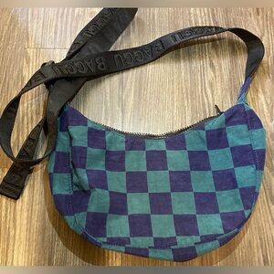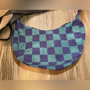 BAGGU Navy Green Check Small Crescent Crossbody
