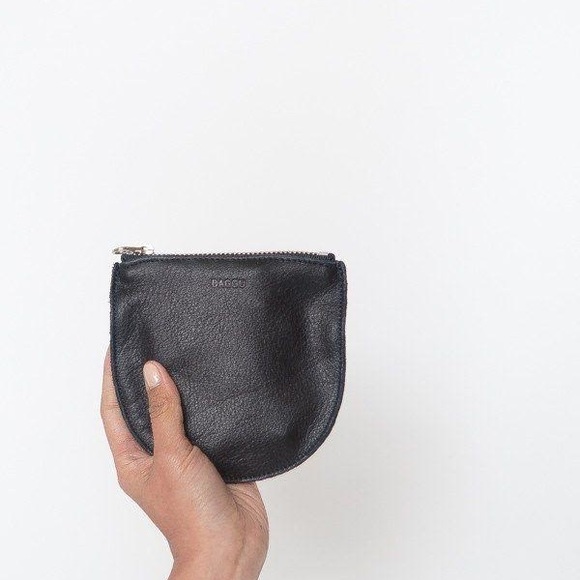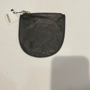 This is a BAGGU Small U-Pouch in the color black. It’s made out of natural milled leather in the USA. It’s brand new with tags still attached. It’s perfect for holding coins and even jewelry like rings.