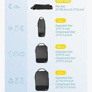 6 Set Compression Packing Cubes - If you'll be preparing multiple outfit options for your travel, you no longer have to sacrifice style for luggage space when you come across BAGSMART PACKING CUBES. Large for jackets, sweaters, and trousers, Medium for shirts, and blouses, Small for underwear, drawstring can be used as a laundry bag to separate your dirty/wet clothes or shoes.