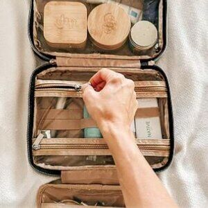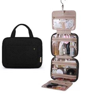 Special Design: Inner main pockets with elastic straps hold bottles upright; double zipper compartment for easy access to the items even not fully open the bag; Transparent sides for providing clear overview of contents