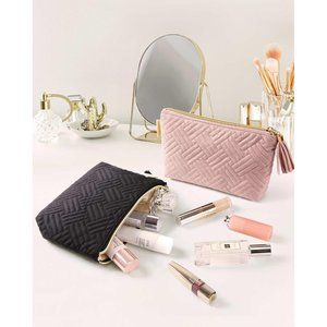 8.7" x 5.5" x 1.6" black cosmetic bag x 1 + pink makeup bag x 1