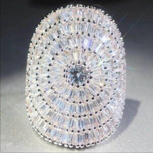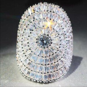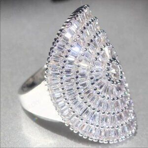 BAGUETTE 21 CT STERLING SILVER DIAMOND RING, CUTE RING, SHINY RING.
