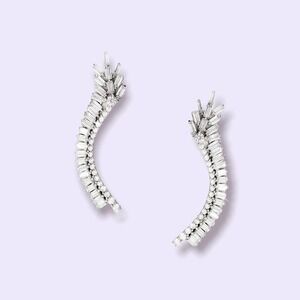 BAGUETTE PAVE EAR CLIMBERS - WHITE SILVER