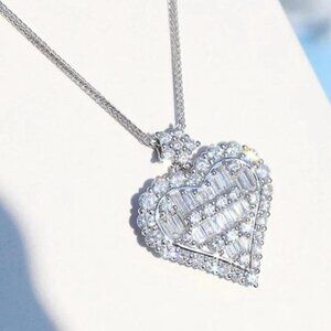 BAGUETTE STERLING SILVER DIAMOND HEART NECKLACE, NICE NECKLACE, CUTE NECKLACE