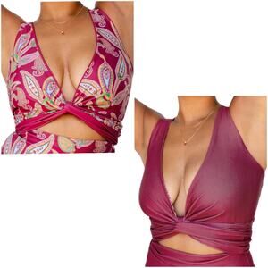 BAIIA Paisley reversible tropical bikini tops in sangria AU 14 US 10. No ties.
