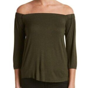 BAILEY 44 ANTHROPOLOGIE ANTHRO Off the Shoulder 3/4 Sleeve Shirt Olive Green Top