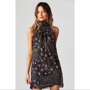 BAILEY 44 for ANTHROPOLOGIE Women’s Black Floral Smocked Turtleneck “Irina” Mini