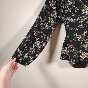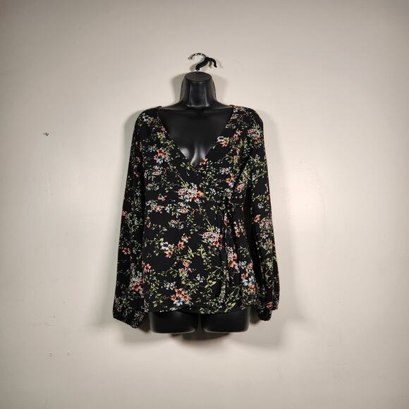 ITEM: BAILEY & CHLOE Wrap Blouse Top Womens M Black Green Floral LS Cottagecore Boho