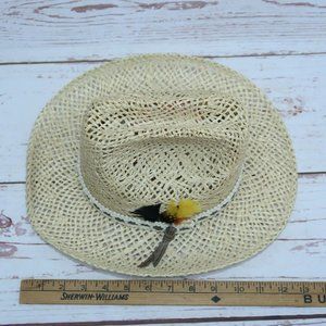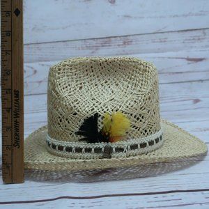 BAILEY U-ROLLIT Straw Western Rodeo Hat Brown Ribbon/Orange Feather - Size 6 3/4