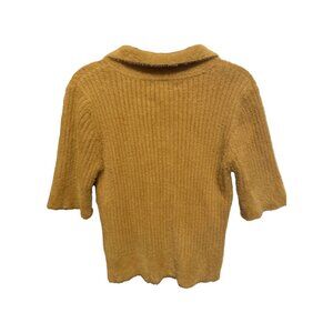 BAILEY/44 MUSTARD GOLD FUZZY KNIT POLO SWEATER TOP