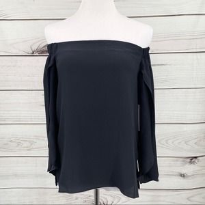 BAILEY/44 Trainspot Top Size S NEW Black Silk Off-Shoulder Split-Sleeve Blouse