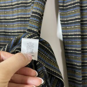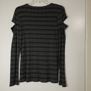 BAILEY 44 navy gold stripe long sleeve shimmer cutout knit shirt size large