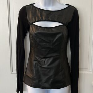 BAILEY/44 FAUX LEATHER LONG SLEEVE “PARKER” TOP W/ CUTOUT FRONT