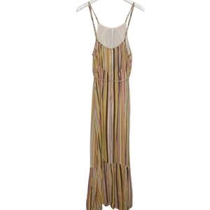 BAILY BLUE Pink Yellow Green White Stripe Sleeveless Maxi Dress Size Large NWT