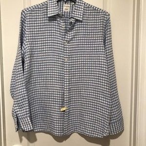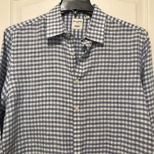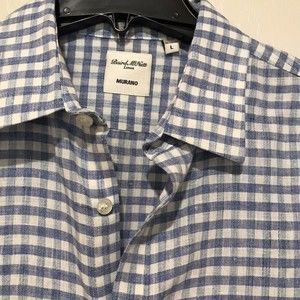 DETAILS: Baird McNutt Linen Murano button down gingham checked men's shirt pre owned in excellent condition