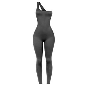 BAIT N SWITCH Bodysuit by Jaded - Sleeveless - One Shoulder - Open Asymmetrical Back - Bodycon - Full Length - Stretchy - Double Layered - 96% Polyester 4% Spandex