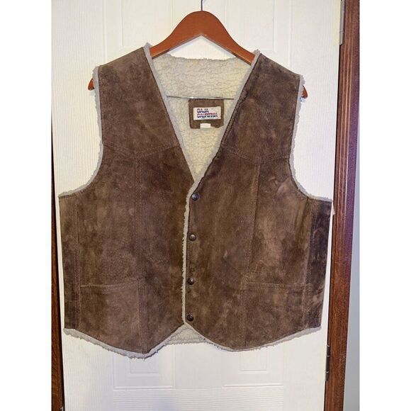 BAJA California Vintage Leather Sherpa Lined Vest Size XL