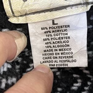 BAJA JOE by Earth Ragz Mexican Hoodie, This size large, black and white striped pullover features a versatile V-neck design and long sleeves, making it an ideal choice for a variety of outdoor activities from hiking to skateboarding. The hoodie comes from Earth Rags' Drug Rug product line and is adorned with a hood and front pouch pockets, providing both functionality and style. NOTE SEE PHOTO FOR FOR 2 SMALL SNAGS WHICH IS COMMON FOR THIS FABRIC.