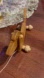 Dachshund dog. It's made of beautifully crafted soft stained wood. The leather connection between the wooden parts of this dog give the impression that it moves like a real animal when pulled along; his body and tail wags as his cute ears flop around. It's easy for your child to grab and push this toy along. Measurements: 15" x 5" x 7" Made in Poland