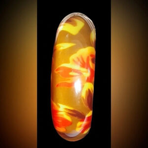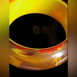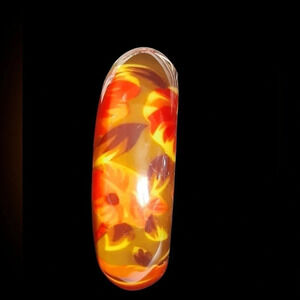 Rare reversed Painted Poppy Bakelite Juice Bracelet 2 1/2" few minor scratches. The white is light coming from the window.