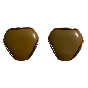 BAKELITE Vintage 1950s Spinach Green on Gold-tone Hexagonal Clip-on Earrings